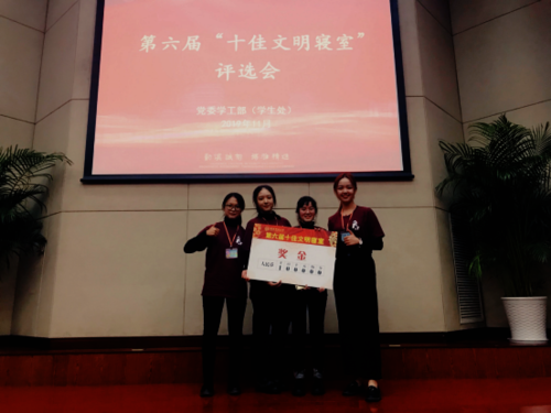 11月28日晚,杭州师范大学第六届 “十佳文明寝室”的评选活动在恕园七号楼200座落下帷幕,电子竞技博彩 博文苑4-203寝室(成员为中文172陈麟、曹艳艳、陈思羽和陈思思四位同学)代表电子竞技博彩 参加校“十佳文明寝室”评比,并荣获校“十佳”的称号。